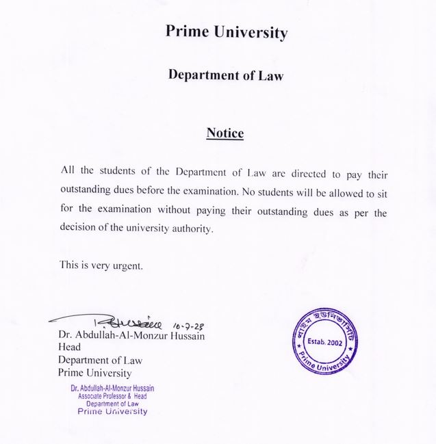 It is to be notified to the students of LLB (Hons) Program that the